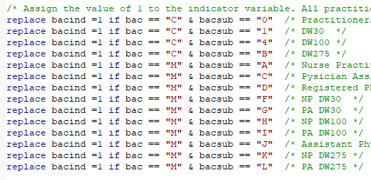 The key dataset used is a quarterly download of clinician data from the DEA. Below an excerpt of code used to identify the population of interest: